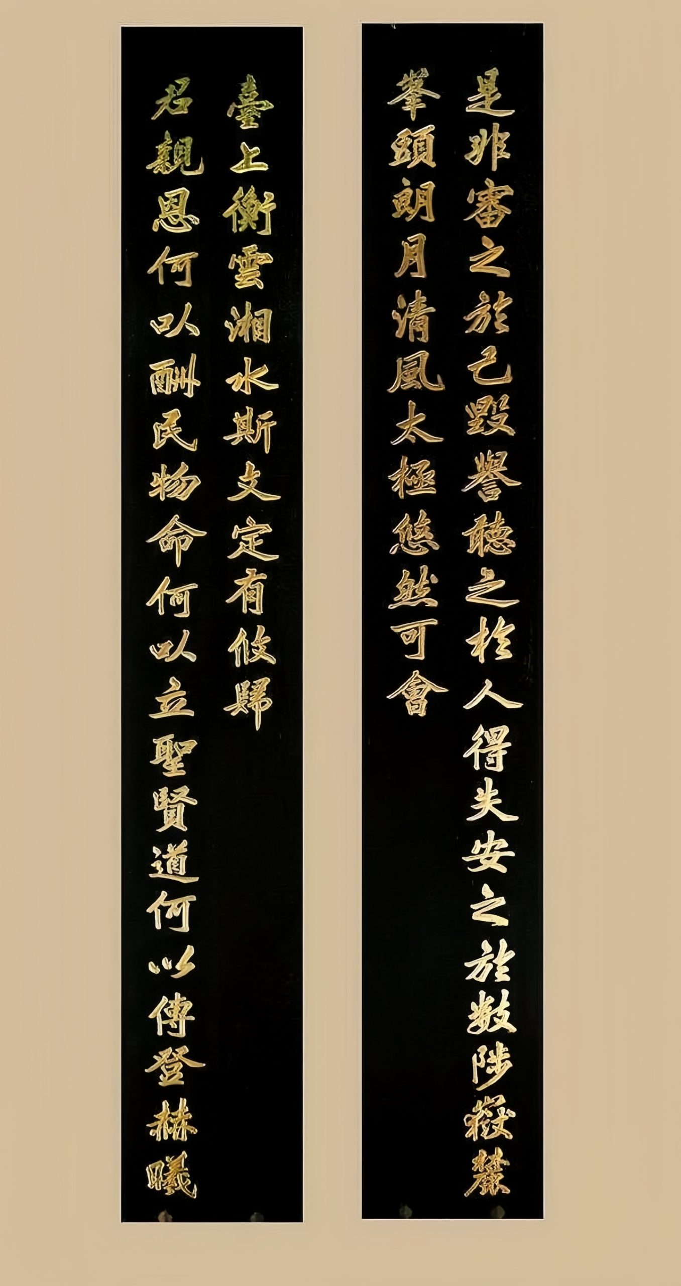 此联诗情画意,跃然纸上,一句“民物命何以立,圣贤道何以传”,喊出了旷敏本“为圣贤传道,为生民立命”的育才初心,激励岳麓学子要将独善其身和兼济天下的思想融合到一起。全联富含哲理,寓意深远,发人深省,达观通透。它告诉我们,“达则兼济天下,穷则独善其身”,如果不能经世致用,也要如一缕清风、一轮明月,活一个自在高远,有一番快意人生。