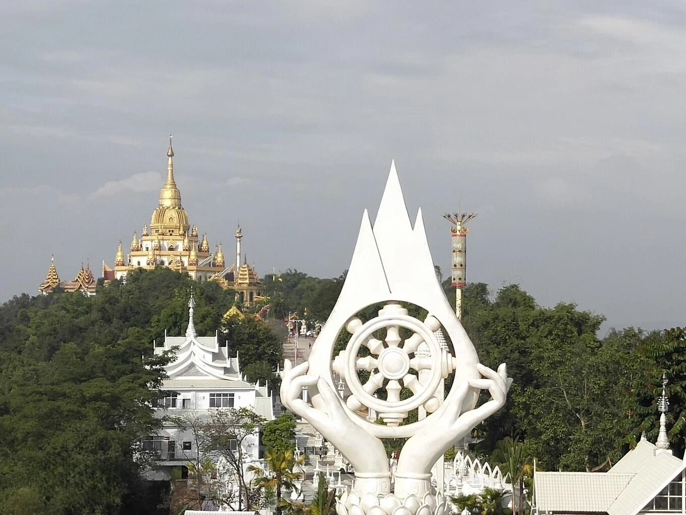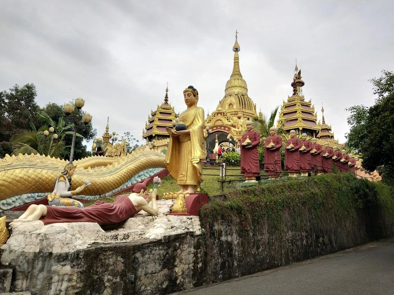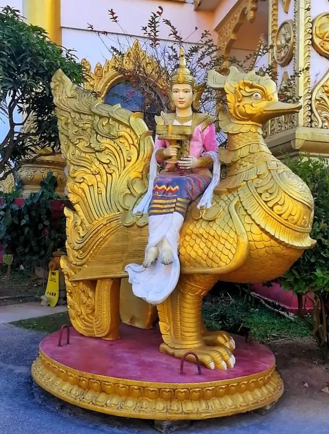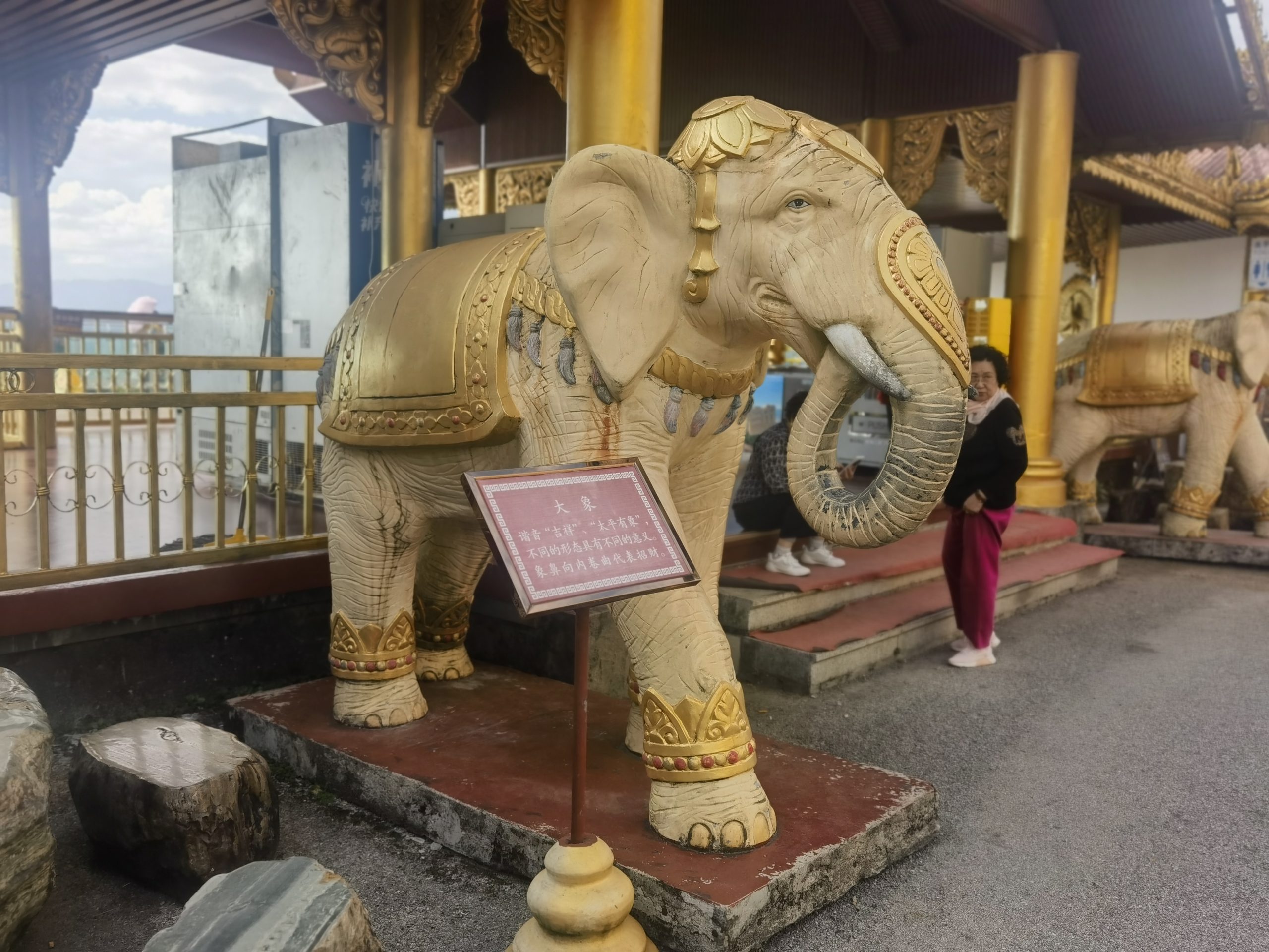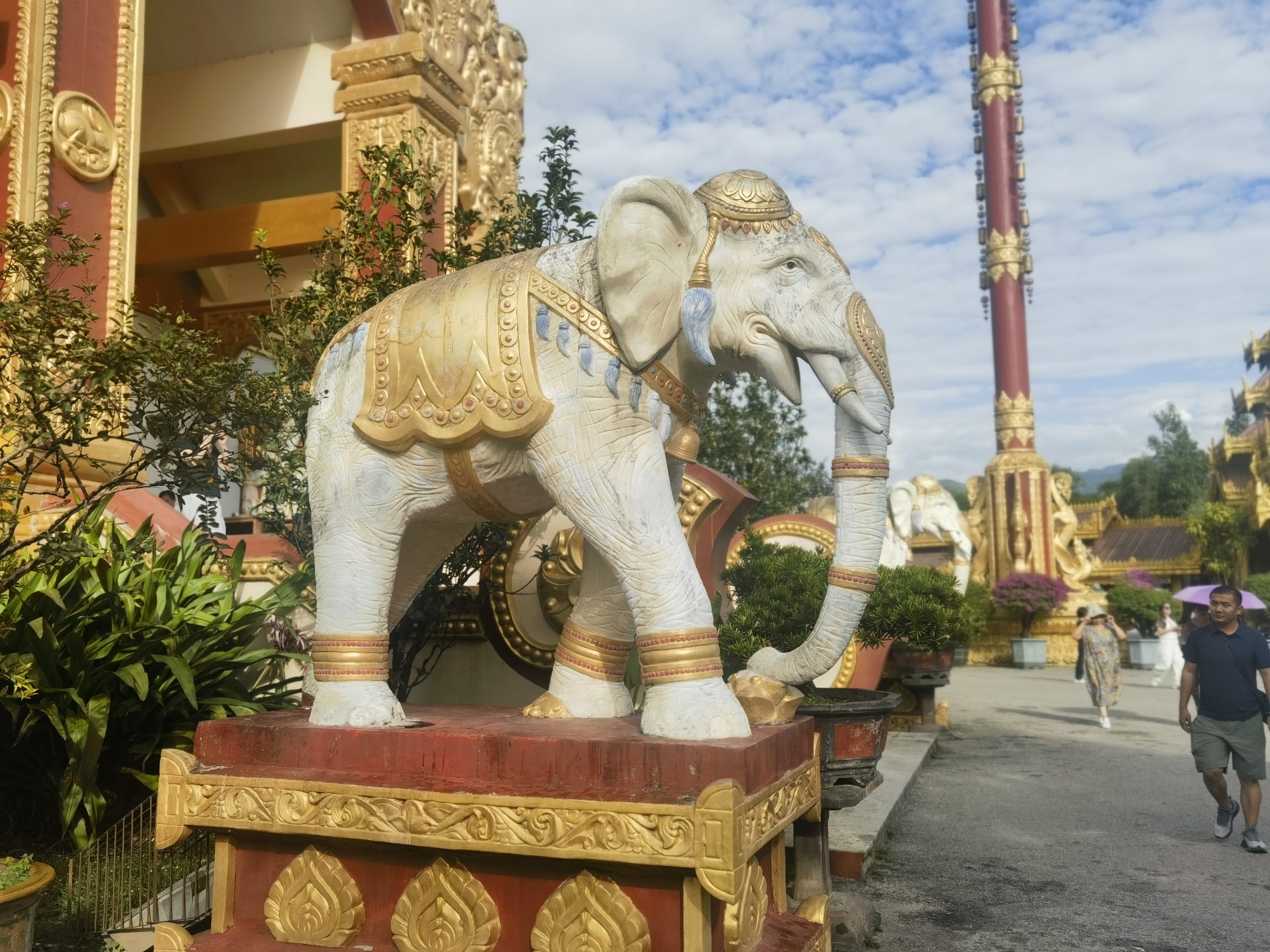 大金塔外的“文化女神”,手持天书,赐予众生知识与智慧。当地各民族的孩子高考或希望学习优秀,像汉族人去祭拜孔子一样,常来此祭拜女神,祈求蟾宫折桂,金榜题名。摸摸手,喻手到功成;摸摸脚,喻临时抱佛脚,也能高中。