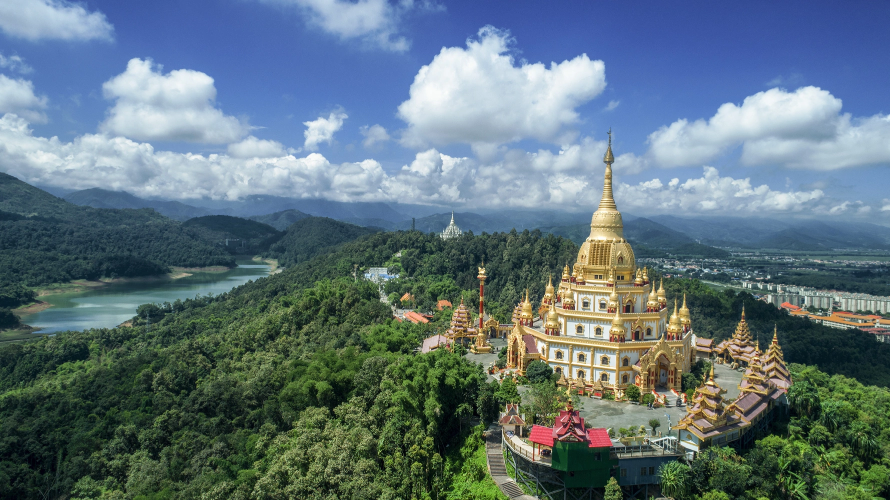 云南省德宏傣族景颇族自治州的首府是芒市,芒市的名字源于古代德昂语“茫施”,意为“驯服老虎的大首领”,后演变为“芒市”,傣语又称“勐焕(měng huàn)”,意为“黎明之城”。著名的勐焕大金塔,是芒市的标志性建筑和主要景点。今日有缘,拜谒圣地。