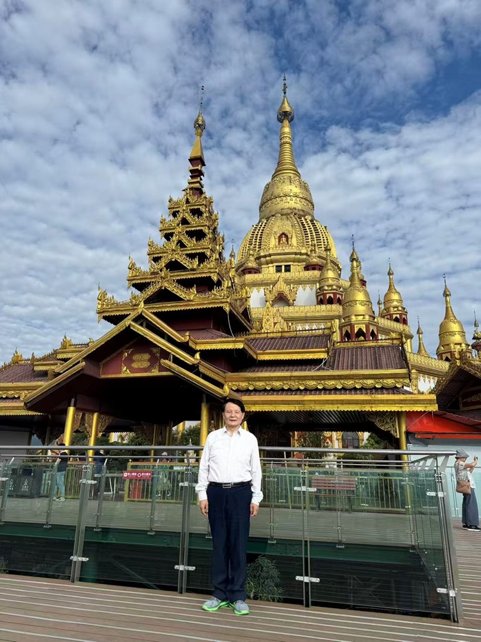 我在大金塔外的观景台赏景,万里云天,居高望远,傣山傣水,芒市古城尽收眼底,好一派滇南风光!