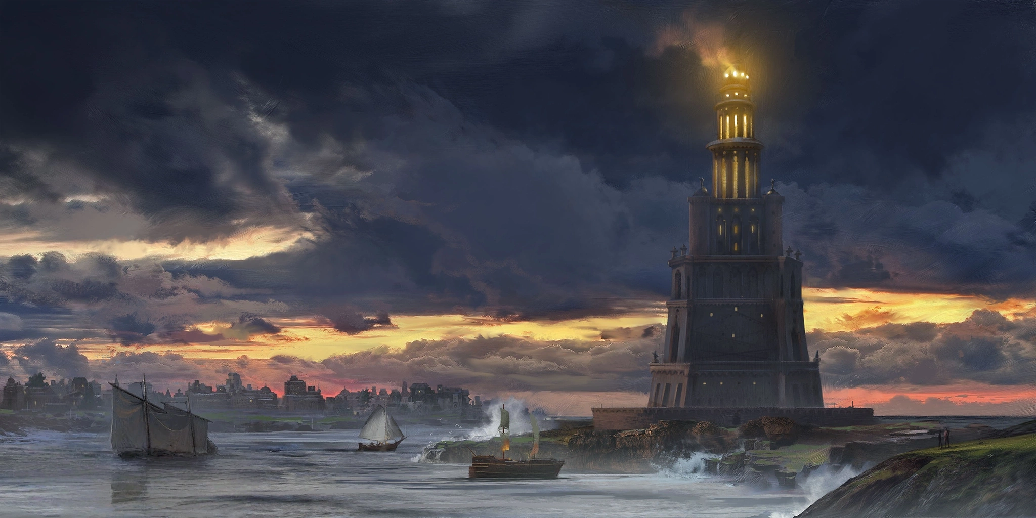 以前全世界都没有灯塔,公元前280年 ,一艘埃及皇家喜船在驶入亚历山大港时触礁沉没,船上的皇亲国戚及从欧洲娶来的美丽新娘全部葬身鱼腹。这一悲剧震惊了埃及朝野。埃及法老托勒密二世下令修建导航灯塔。亚历山大灯塔是古代世界七大奇迹之一,历时40年才建成,是继吉萨金字塔后世界最高人工建筑,总高约135米,由花岗岩和铜建造,白天用一面巨大镜子反射日光,晚上用火光引导船只,它是世界上所有灯塔的原型,灯塔在建成后的1500年间历经多次地震损坏,2015年埃及政府宣布重建,至今没有建成。