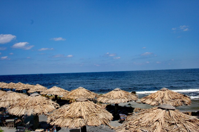 海滨一个一个的阿拉伯茅草屋顶的小木亭非常有特色,海风轻轻地吹,椰树轻轻地摇,你可以在里面的躺椅上休憩,也可以在那里喝咖啡,聊天,观海,一些人在海风里与情侣缠绵,看上去非常惬意。