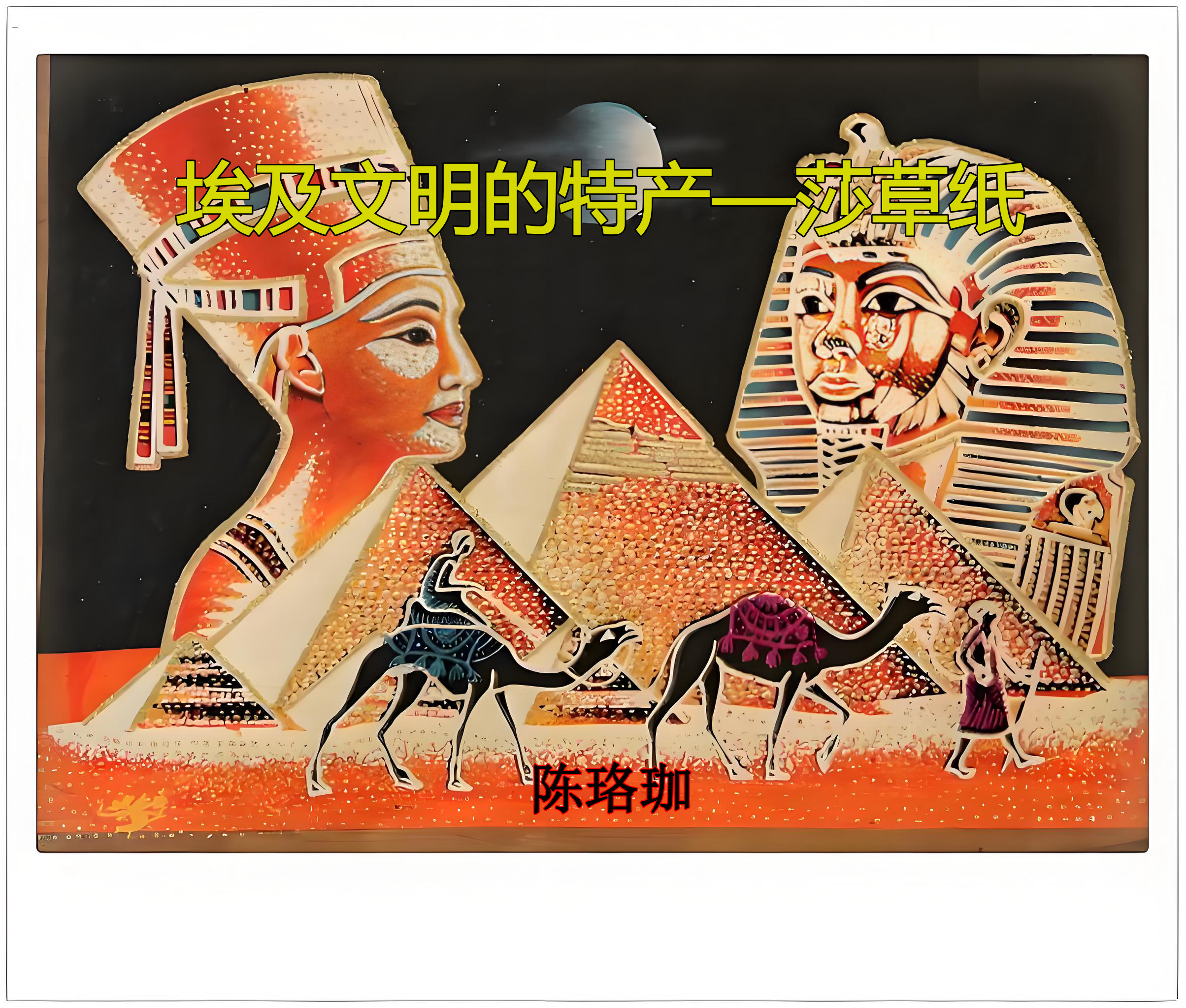 我们乘车返回开罗,天刚见黑,精明的导游哈桑又把我们拉到了开罗著名的GOLDEN EAGLE纸莎草画店。 中国古代的“文房四宝”中有宣纸,人家埃及也有莎草纸,但埃及发明和使用的时间比我们要早得多。中国有国画,埃及有纸莎草画。纸莎草是古埃及人造纸的材料,是尼罗河三角洲生长的一种类似咱们芦苇的水生莎草科植物,属多年生绿色长秆草本,长在水里,高达2米,茎端为细长的针叶,向四下散落如蒲公英。