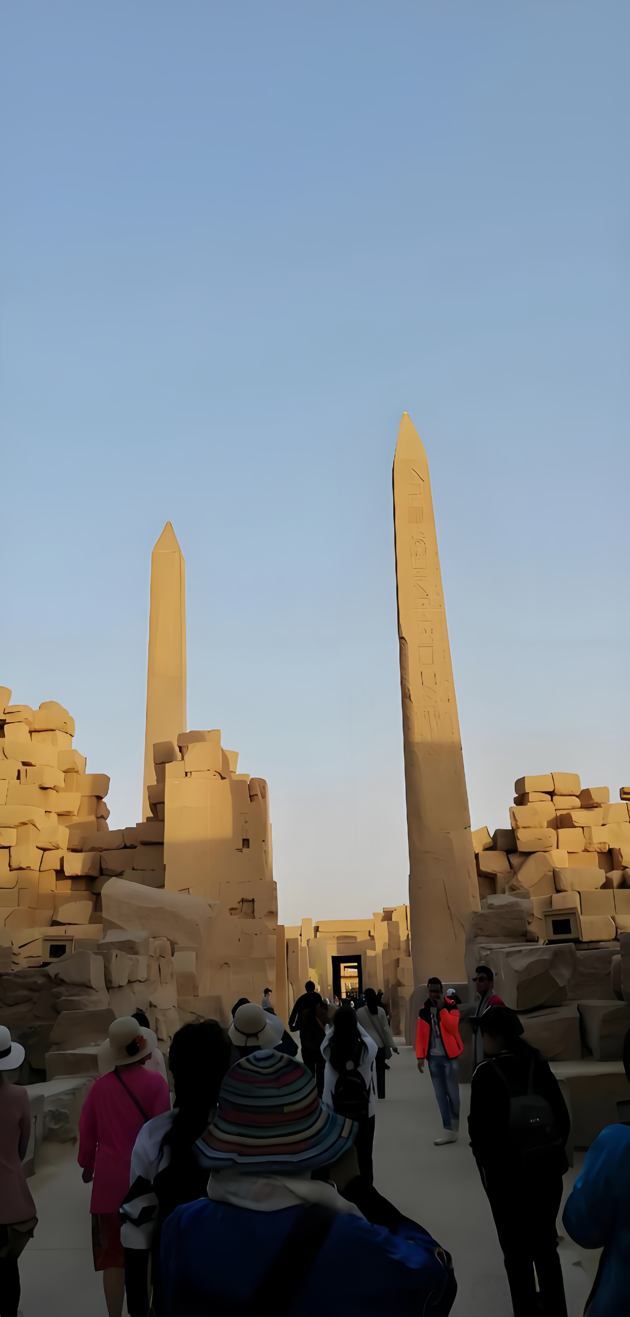 在埃及古都卢克索,我们走进了世界上最大的卡尔奈克神庙群,我看到了神往已久的两个方尖碑。