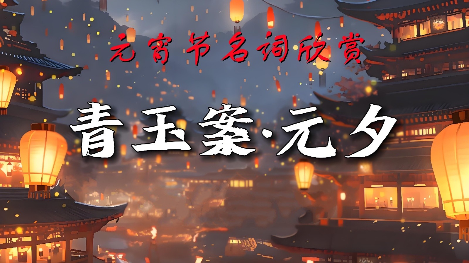 这首词的上半阕写正月十五的晚上,满城灯火,尽情狂欢的景象。“东风夜放花千树,更吹落,星如雨”:一簇簇的礼花飞向天空,然后像星雨一样散落下来。一开始就把人带进“火树银花”的节日狂欢之中。“东风夜”化用岑参的忽如一夜春风来,千树万树梨花开。宝马雕车香满路,达官显贵们也携带家眷出来观灯,跟下句的“鱼龙舞”构成万民同欢的景象。“凤箫声动,玉壶光转,一夜鱼龙舞”,是说在月光下,灯火辉煌,沉浸在节日里的人们通宵达旦的载歌载舞。